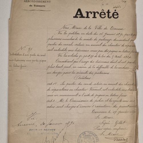 Groundbreaking for the Burgundy Canal took place in 1777, starting with the Laroche-Tonnerre section (approx. 45 km). In 1790, it reached the Tonnerrois region, but was suspended under the Terror. In 1809, work resumed, with the help of manpower provided by hundreds of prisoners of war (Spanish, Prussian, Austrian...) stationed in Tonnerre. It wasn't until 1832 that the canal was fully opened to navigation.