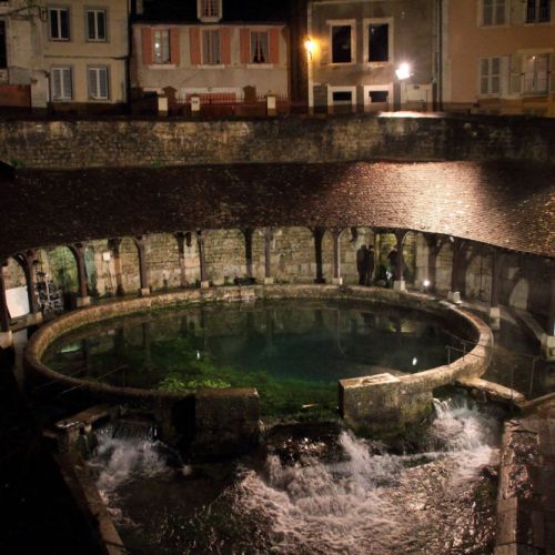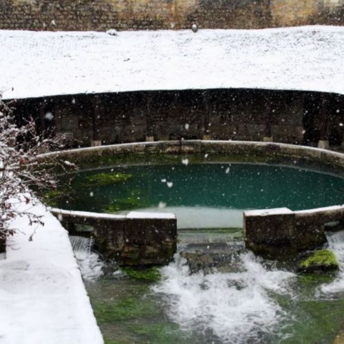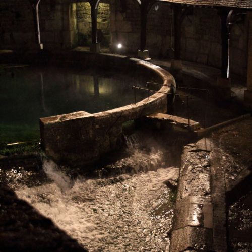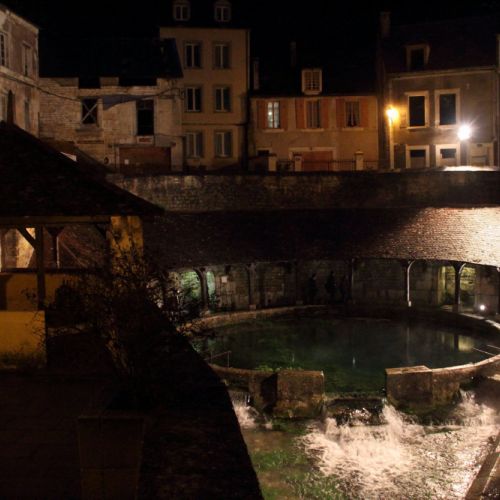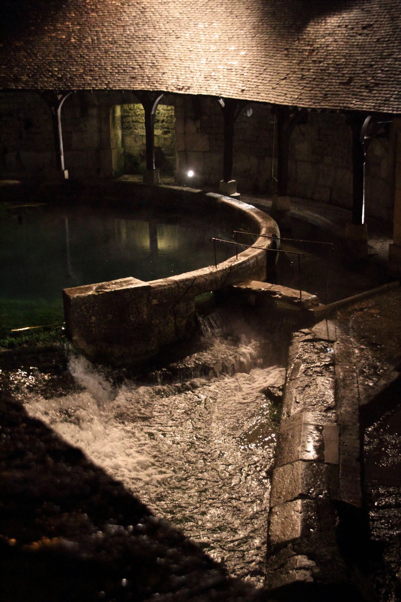 La paradoja se deriva del hecho de que el manantial fue venerado en otro tiempo, como demuestra su nombre: Fuente Divina. No fue probablemente hasta el siglo XVII cuando se puso en valor el manantial. En 1758, el padre del Caballero de Éon mandó construir el lavadero tal y como lo conocemos hoy en día, compuesto por una pila circular con agua de color esmeralda de 14 metros de diámetro, rodeada por una artesa en la que las lavanderas lavaban la ropa, y un cobertizo semicircular con altas chimeneas para calentar el agua. Los días de lavado eran una oportunidad para que las lavanderas intercambiaran noticias de sus barrios, entre otras cosas. Y algunos oídos indiscretos, sobre todo los de los niños curiosos, gustaban de seguir estas conversaciones gracias a los conductos de las chimeneas, cuya parte superior daba a la calle por encima del lavadero.