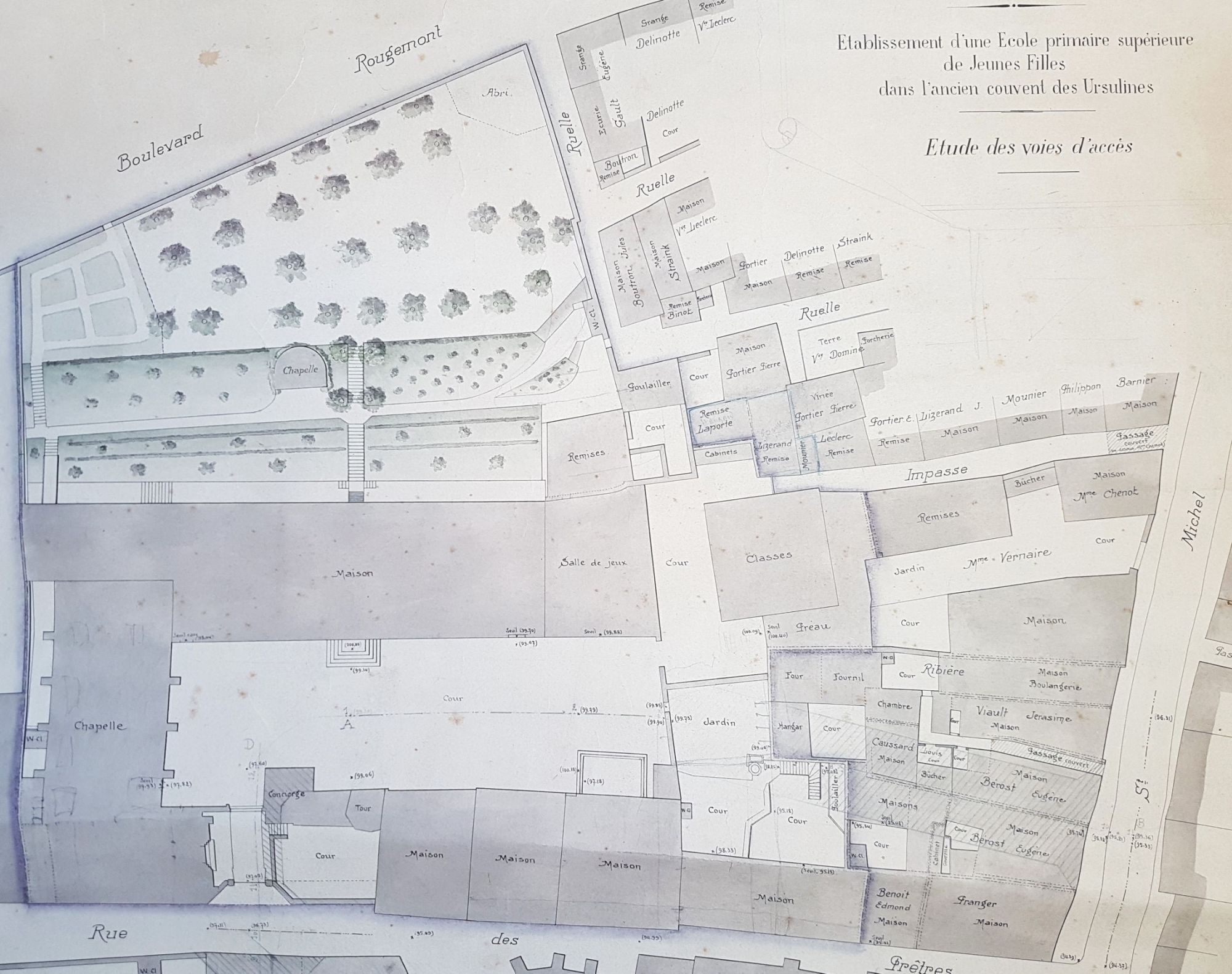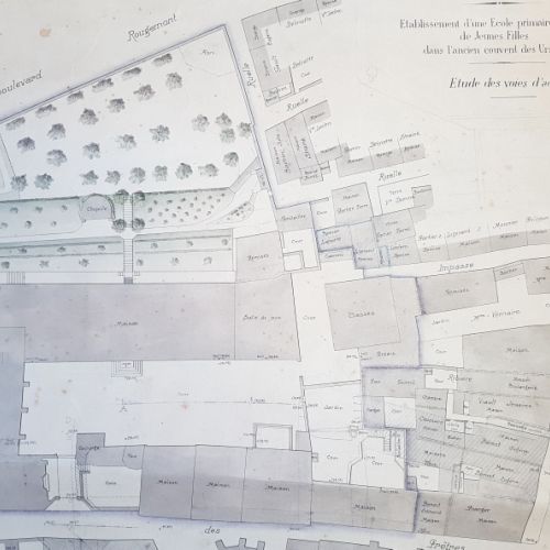 À partir de 1805, les congrégations étant de nouveau autorisées, la communauté d’ursulines se reconstitue et quitte la maison Bazile pour une petite masure située dans l’actuelle rue Pasteur. Pendant près de 70 ans, les sœurs vont patiemment acheter les terrains et maisons contiguës à leur propriété, tout en menant à bien leur mission d’instruction des jeunes filles.