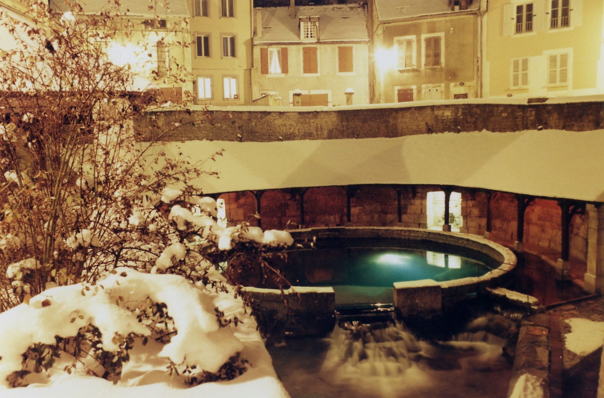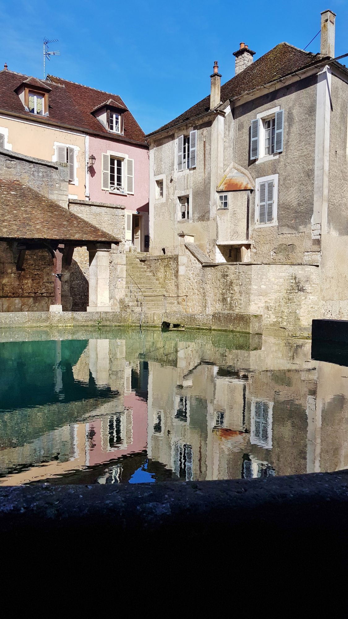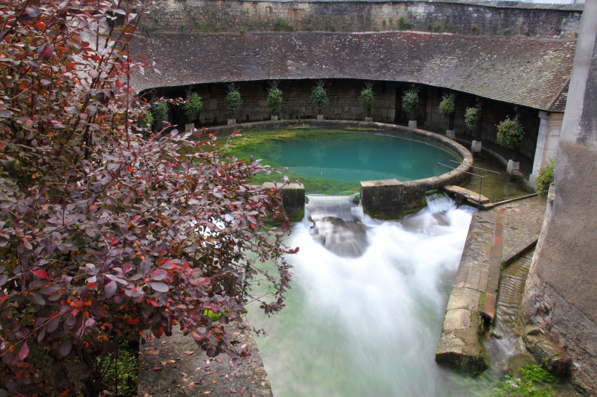 La paradoja se deriva del hecho de que el manantial fue venerado en otro tiempo, como demuestra su nombre: Fuente Divina. No fue probablemente hasta el siglo XVII cuando se puso en valor el manantial. En 1758, el padre del Caballero de Éon mandó construir el lavadero tal y como lo conocemos hoy en día, compuesto por una pila circular con agua de color esmeralda de 14 metros de diámetro, rodeada por una artesa en la que las lavanderas lavaban la ropa, y un cobertizo semicircular con altas chimeneas para calentar el agua. Los días de lavado eran una oportunidad para que las lavanderas intercambiaran noticias de sus barrios, entre otras cosas. Y algunos oídos indiscretos, sobre todo los de los niños curiosos, gustaban de seguir estas conversaciones gracias a los conductos de las chimeneas, cuya parte superior daba a la calle por encima del lavadero.