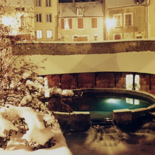 Il paradosso deriva dal fatto che un tempo la sorgente era venerata, come testimonia il suo nome: Fonte Divina. È probabilmente solo nel XVII secolo che la sorgente è stata sviluppata. Nel 1758, il padre dello Chevalier d'Éon fece costruire il lavatoio come lo conosciamo oggi, composto da una vasca circolare con acqua color smeraldo di 14 metri di diametro, circondata da un abbeveratoio in cui le lavandaie lavavano i panni, e da una tettoia semicircolare con alti camini per riscaldare l'acqua. I giorni di lavaggio erano l'occasione per le lavandaie di scambiarsi, tra l'altro, le notizie del vicinato. E alcune orecchie indiscrete, soprattutto quelle dei bambini curiosi, seguivano volentieri queste conversazioni grazie alle canne fumarie, le cui sommità si affacciavano sulla strada sopra il lavatoio.