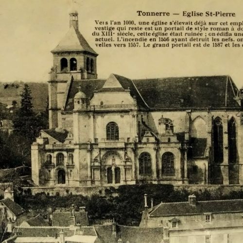 È durante questa stessa campagna di restauro che le campate furono ornate con pannelli a grisaglia, di cui rimangono pochi esempi in Francia. La città originaria di Tonnerre, costruita sull'altopiano di Vieux-Châteaux, aveva due chiese: Saint-Aignan e Saint-Pierre, la sua succursale. Quest'ultima, situata su un promontorio roccioso, si trovava leggermente al di sotto della città principale e costituiva un collegamento con la città bassa costruita intorno alla chiesa di Notre-Dame e all'ospedale. Nel XII secolo, queste due chiese furono donate dal conte di Tonnerre a San Roberto, abate di Molesme e futuro fondatore dell'ordine di Cîteaux.